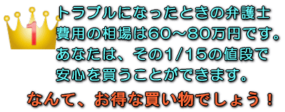 ⑨ご自分でお作りになった契約書でトラブルになったときに弁護士に相談する費用よりお得です。